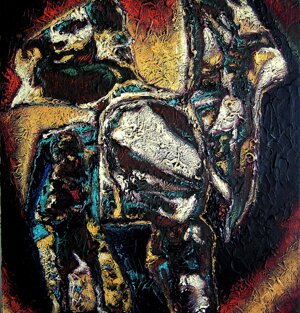 Travel to Africa represents the exploration of humanity's roots, and therefore also of art. Visits to museums and ateliers by African artists fed and influenced Mario's painting and chromaticism, generating compositions that have to do with a primordial behavior of man, of forgotten spontaneity, even if inherited from nature.